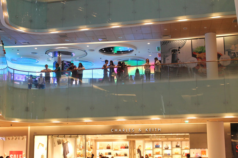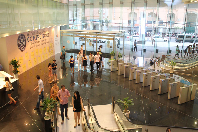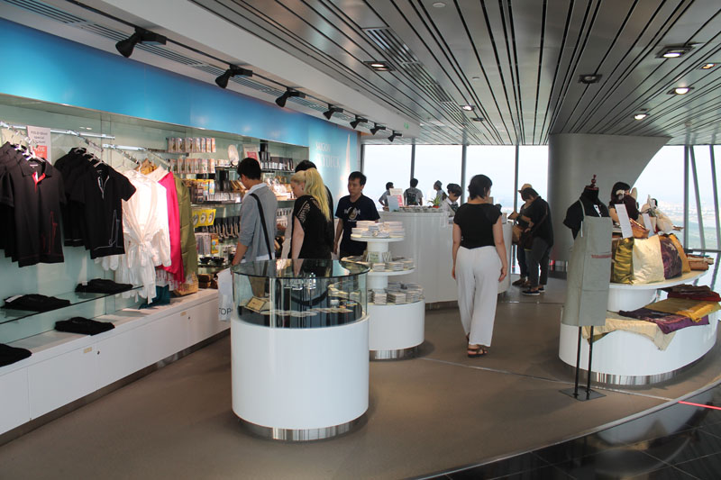 Les 5 premiers étages de la tour sont réservés à un petit centre commercial avec boutiques, restaurants et cinéma.