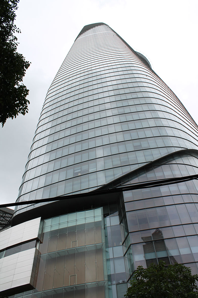 Le verre spécial qui habille la tour a été acheté en Belgique. Il peut résister à la très forte pression exercée par le vent. Ce verre a été adapté en Corée du Sud puis transporté en Chine pour faire les panneaux. La tour est habillée de 6000 panneaux de ce verre incassable.