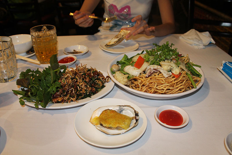 Avec mon épouse nous avons eu la chance de pouvoir manger au restaurant Ganh Hao. Je parle de chance car il faut réserver longtemps à l’avance tant le restaurant a du succès. Ganh Hao est certainement un des meilleurs endroits pour manger en ville. Le restaurant est situé en bord de mer et sert de délicieux fruits de mers à un tarif abordable.